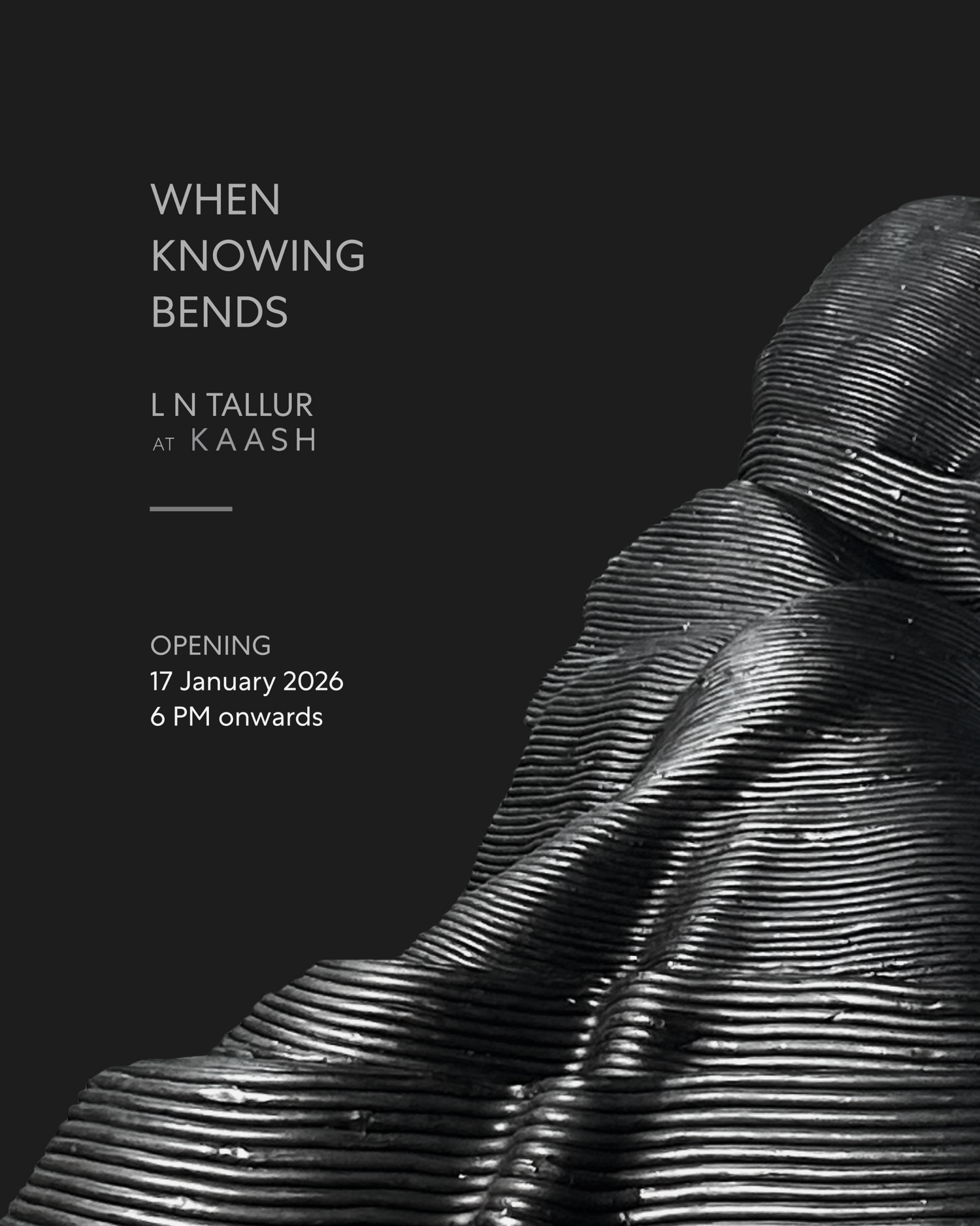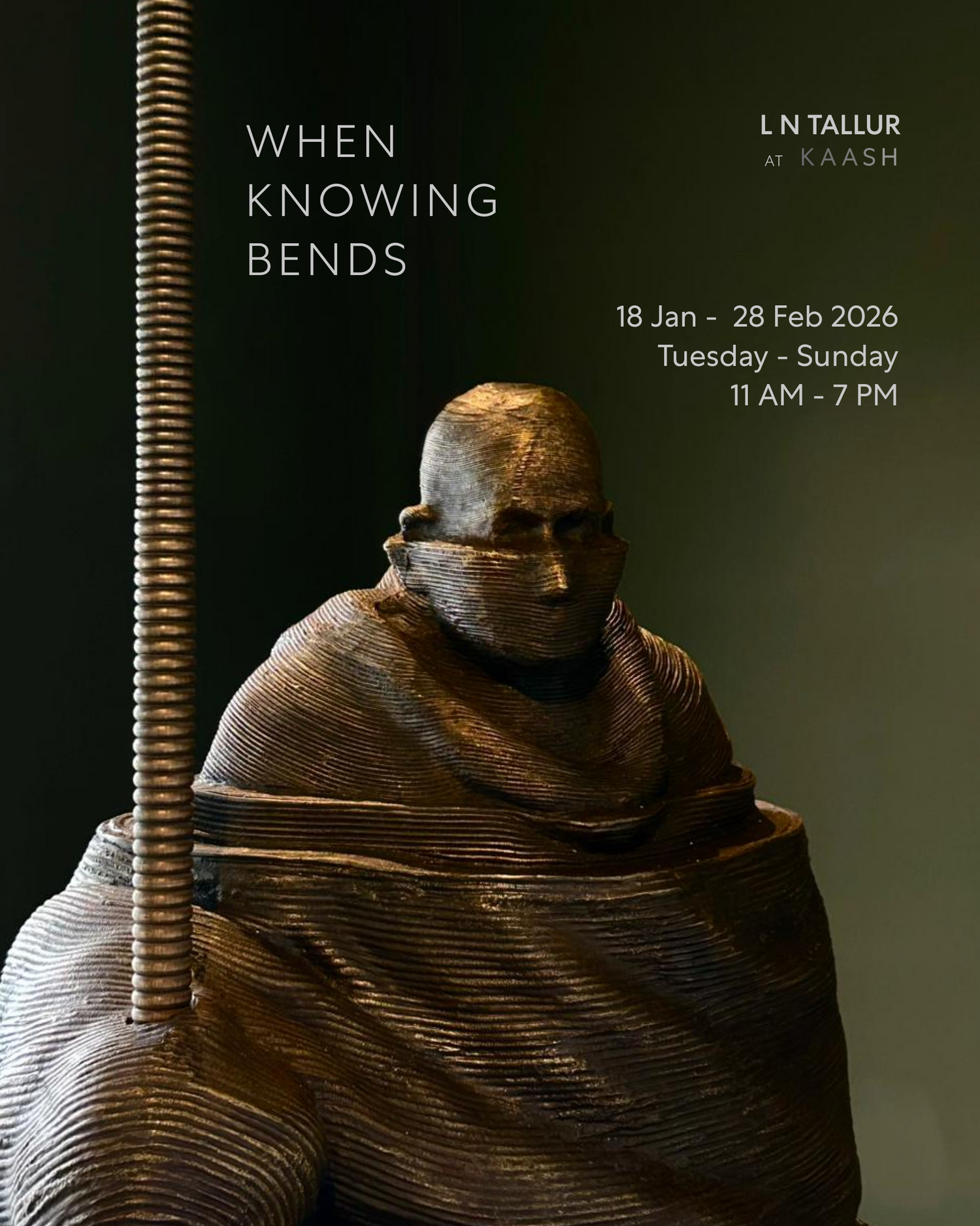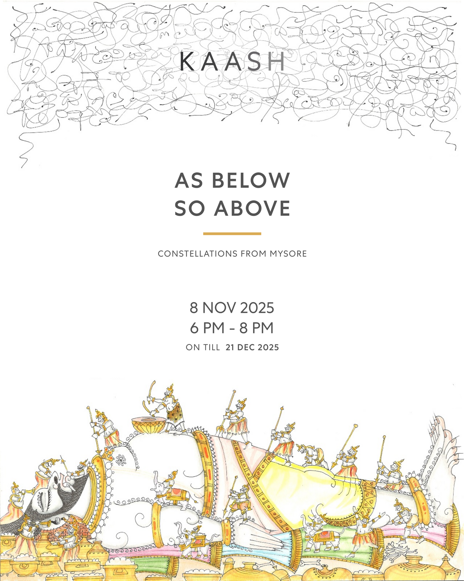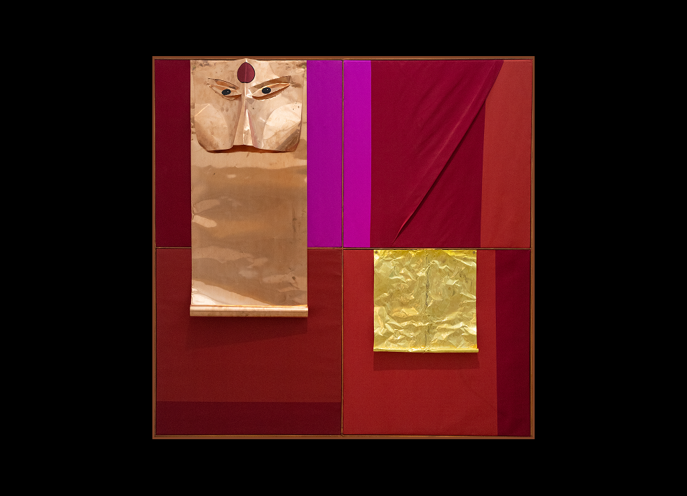 Jayshree worked with the KAASH team to create set of works that feature a set of metal masks crafted by the artist, transcending the boundaries of material and medium. These masks convey vibhas or the fearsome Devi.