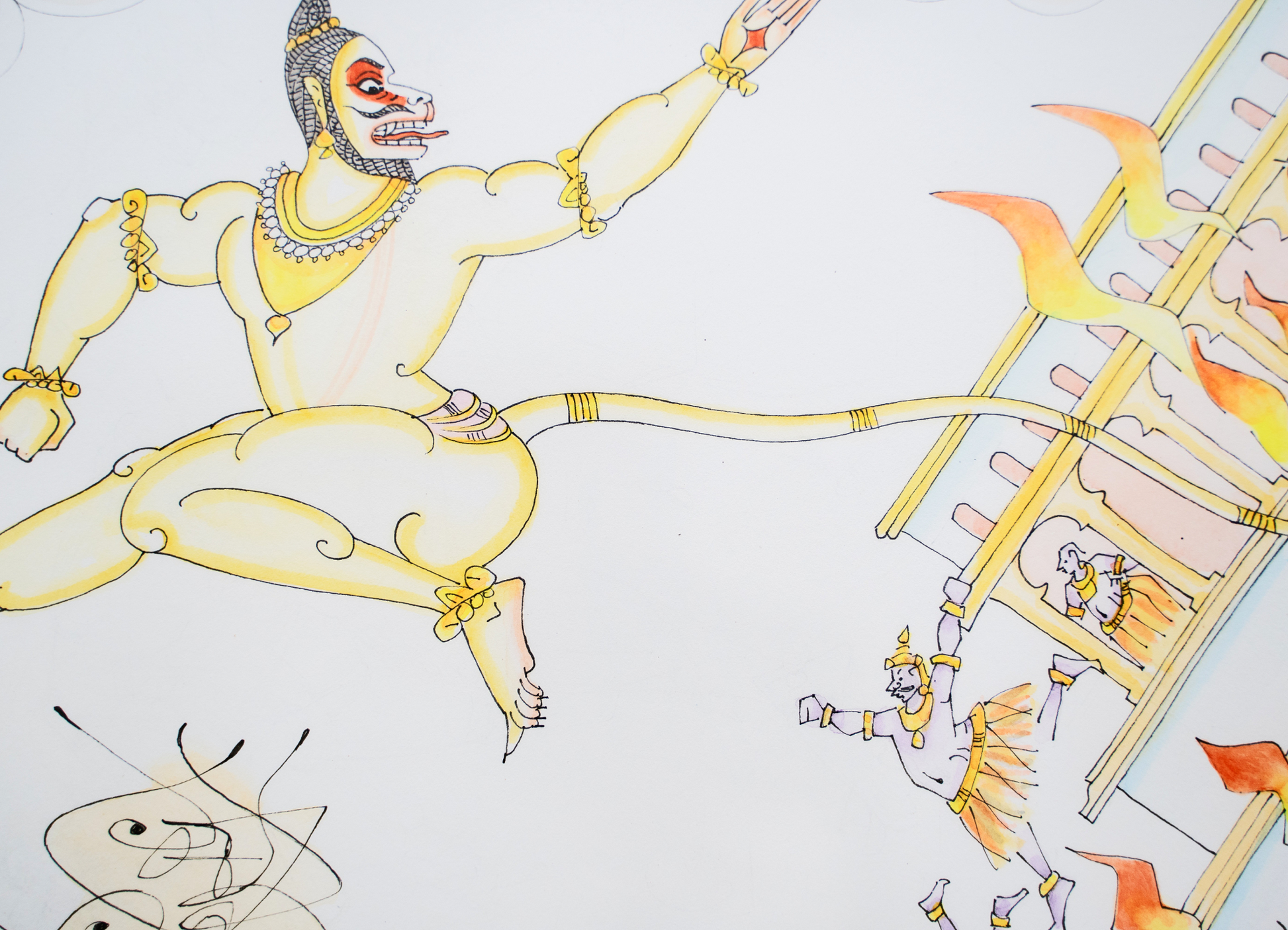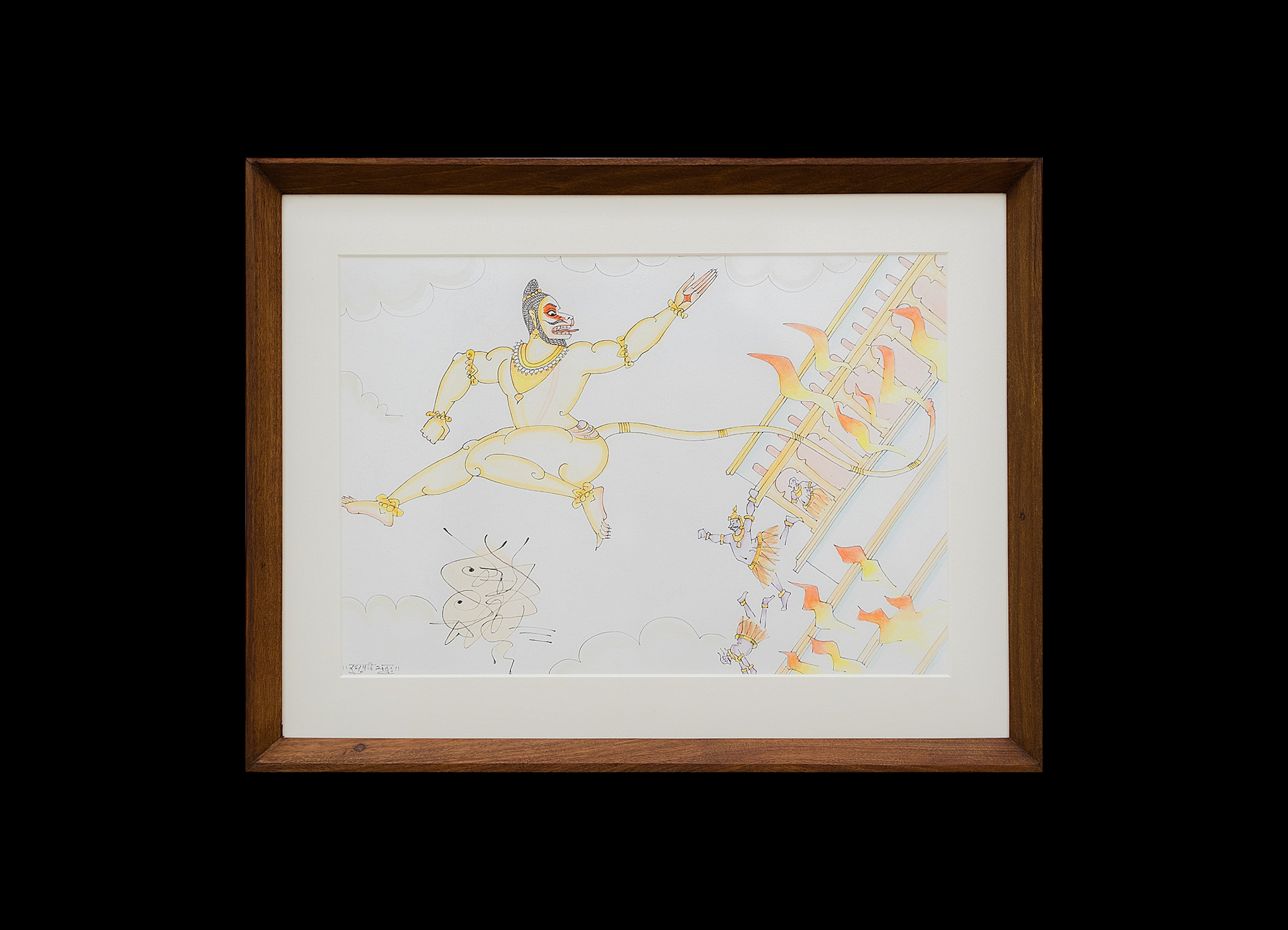 Pen and watercolour on paper, Nandi wood frame with anti-reflective glass